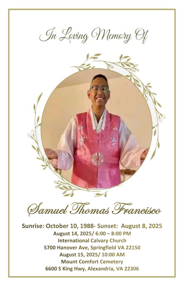Sam's Memorial Service Program Download the pdf file of Sam's Memorial Service Program Download "장례 주보(8.14.25).pdf"